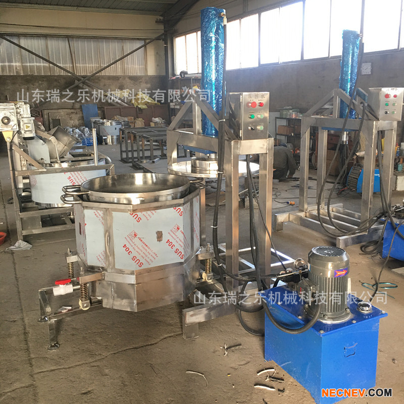酱菜压榨机主要依赖液压站压力,压盘下压使物料中的水分逐渐被挤出,从而实现物料的脱水。物料入压榨机桶里,被逐渐增大的压力进行压榨,水分通过滤网被排出,实现脆皮黄瓜压榨脱水效果!