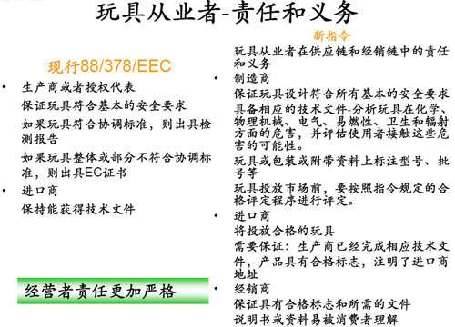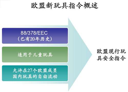 欧盟作为我国玩具的主要出口地之一,其出台的玩具指令对我国玩具企业的发展有至关重要的作用。应对最新出台的欧盟新指令,中外玩具网携手恩福检测技术有限公司就新旧指令进行对比,使企业快速了解新指令的要求,制胜国际市场。