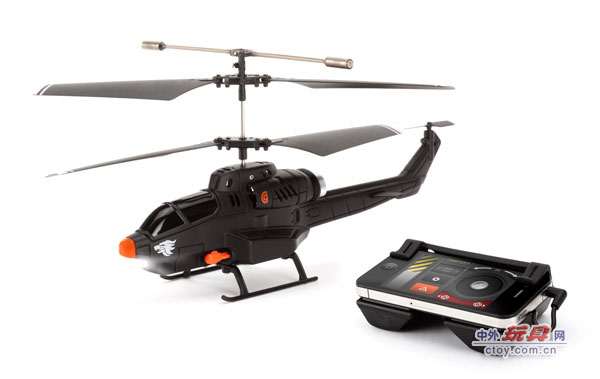 美国科技公司GRIFFIN TECHNOLOGY开发的“TC攻击直升机”是一款能发射导弹的遥控直升机。它提供一个飞行控制装置,玩家只需下载专用的应用程序,然后将控制装置通过连线插入苹果IOS或安卓系统的智能设备的耳机插孔中,就可以将它变成一个遥控器。游戏时屏幕将显示出虚拟的控制手柄,玩家只需用手指触摸或者晃动智能设备就可以控制直升机飞行。“TC攻击直升机”能够在空中发射导弹,而且还能制定并记录3种飞行路线。