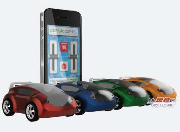 来自香港的DESK PETS INTERNATIONAL公司的遥控车“CAR-BOTS”可以通过苹果IPHONE、IPAD和IPOD TOUCH,以及安卓手机系统控制。车身带有可收缩的USB充电插口。不同颜色的CAR-BOTS有各自的遥控频率,可以让多部CAR-BOTS同时进行竞技和对战。游戏时还能在智能设备的屏幕上模拟挡风玻璃碰撞损坏等效果。