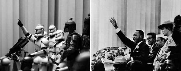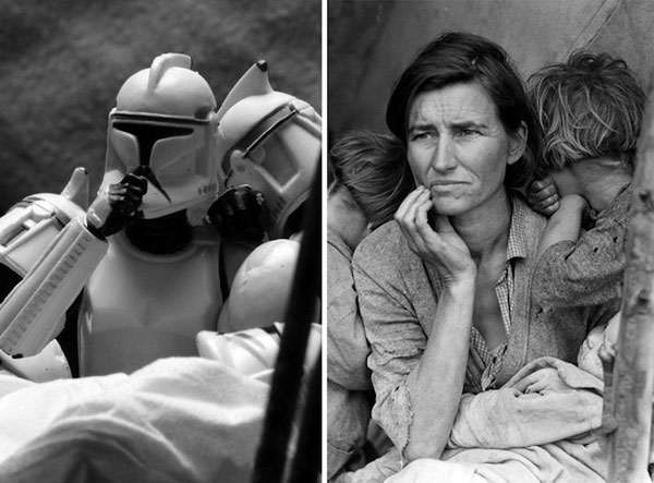 David Eger的摄影项目《星球大战的52个星期》,是以许多著名历史事件照片为原型,用星球大战的电影玩具重现经典时刻的项目。