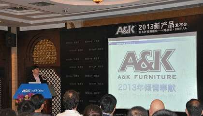 A&K沃克家居2013年新品发布会近日在深圳隆重举行。本次发布会,以“开时尚家居新风,领现代实木潮流”为主题,旨在宣扬一种新的生活方式,让每一个人都拥有一个健康、时尚、现代的新家居生活。简约精致的设计,实用贴心的功能加上自然闲适的生活方式,构成A&K沃克新产品独特的品位和全面领先的竞争优势。