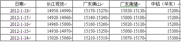 表1:国内各地现货市场电解铝报价