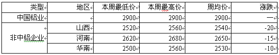 本周国内各地市场氧化铝价格整体呈小幅回落态势,非中铝价格各地差异变化不大。山西地区,本周市场主流报价小幅下移10元/吨左右、至2550元/吨;因交投依然欠佳,部分企业略低于市场价也肯发货。而河南地区,本周大厂报价小幅回调至2680元/吨左右,而小厂则因需求少,报价降得更多;目前市场最低报价已降至2620元/吨附近。山东地区,市场报价也小幅下移20元/吨左右,不过相对来说,厂家逢低还是略显惜售的;所以目前市场报价基本处于国内最高水平2680元/吨左右。华南地区,市场报价则依然保持不变,成交区间主要维持在2520-2560元/吨之间,这或许与当地不少企业已减产有关,预计后市价格也很难再有多少跌幅;而中铝厂家则依然保持2900元/吨的报价不变。本周国内电解铝价格走势依然趋弱,而氧化铝价格更是提前下调;这主要因市场需求持续减弱所致,而短期内我们预计,这种态势或仍将延续。不过短期内铝价继续下跌的空间已经不大,且在其中长期趋势上我们仍暂维持一定乐观预期;所以建议库存不多的商家仍可趁当前价格偏低时、适量增加库存。以上为个人观点,仅供参考!