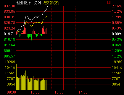 截至发稿创业板指报837.53点,涨幅为2.17%。