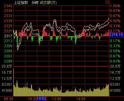 新华网消息 21日沪深两市早盘双双高开,稍事震荡后小跳水,急跌至2305.10点,随即又强劲反弹至2320点上方,后围绕2320点展开剧烈震荡,午盘收红。午后下滑后拉升,随后小幅震荡上扬。