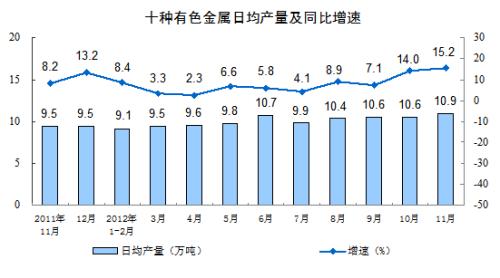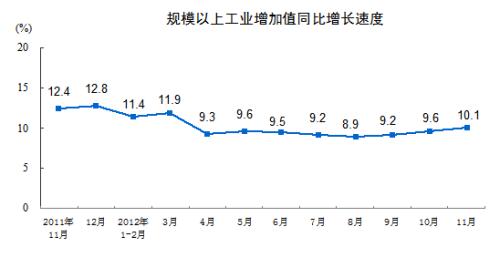 分轻重工业看,11月份,重工业增加值同比增长10.5 %,轻工业增长9.2%。