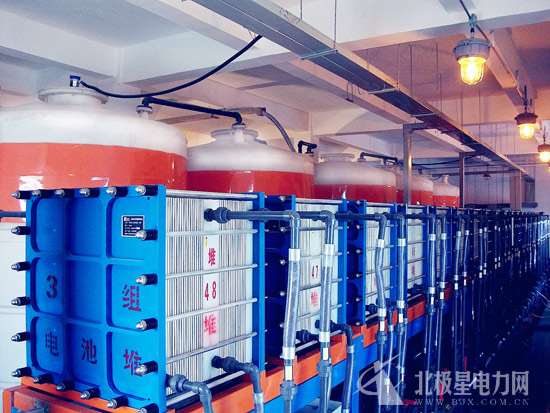 煤窑山风电厂储能电站,采用全钒液流储能技术路线,单电池堆功率为10.5kW,共48个电堆和电池管理系统集成,全部由华鼎储能提供。储能电站功能设计从煤窑山风电厂实际出发,分为整体运行、区域运行、计划发电三种方式,整体运行:储能电站跟踪风电厂总出口功率信息,响应电网即时下达的发电量指标数据要求,移峰填谷,平滑输出,最大限度响应电网需求;区域运行:储能电站同风电厂内3台风力发电机组独立通讯,形成500kW/1000kWh储能系统同2340kW风机进行区域运行,在储能占风电装机21%的比例状态下运行,储能电站“全攻全守”,在取得实际运行效果数据的基础上,制定完善储能型风电场运行策略和储能配置;计划发电:储能电站加入风电厂有功管理系统,进一步优化风电厂电能质量,减少弃风损失,提升并网能力,提供电网需求响应服务。