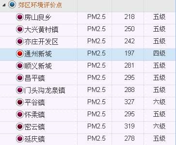 截至14时,北京郊区空气质量情况(来源:北京市环境保护监测中心网站截图)