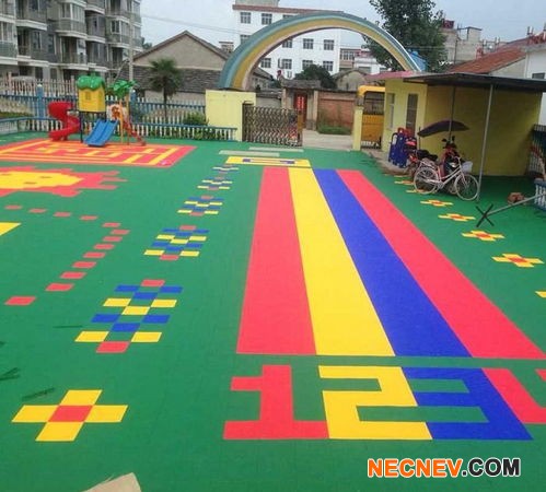 2、方便施工:安装快捷,维护简单,只需平整的水泥或沥青地面即可使用铺设,安装时地板间以公扣母扣衔接,为使安装后相邻两地板块配合紧密,安装时可使用橡皮锤敲击地板接缝,不需胶水和任何钉子,逐格拼装地板通常四人不到三小时即可完成场地铺装或揭起。平时维护室外只需用水冲洗即可,室内使用拖把清洁,维护成本很低;