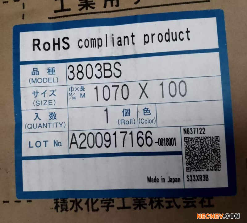 积水3803BS,黑黑胶0.03mm,规格1070mmX100m.