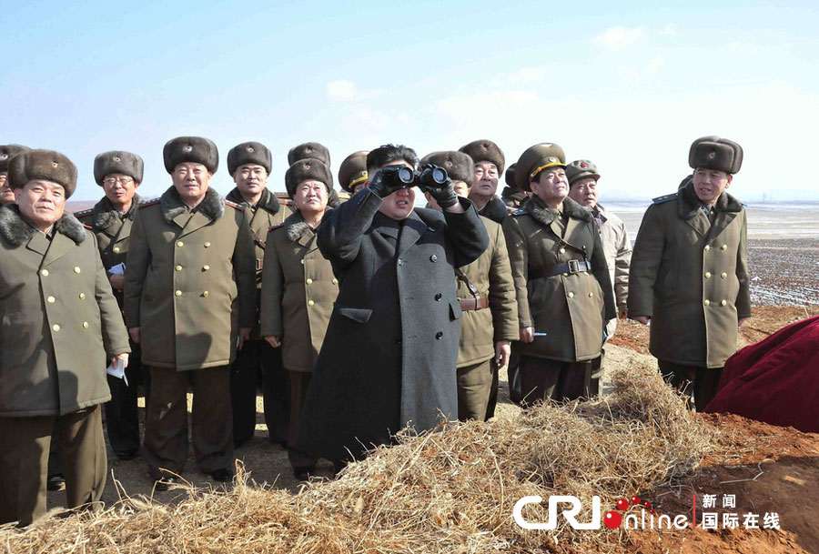 当地时间2013年2月23日,朝鲜最高领导人金正恩日前指导朝鲜人民军航空及防空军和朝鲜人民军第630大联合部队的飞行练习和空降练习。图片来源:KNS/东方IC