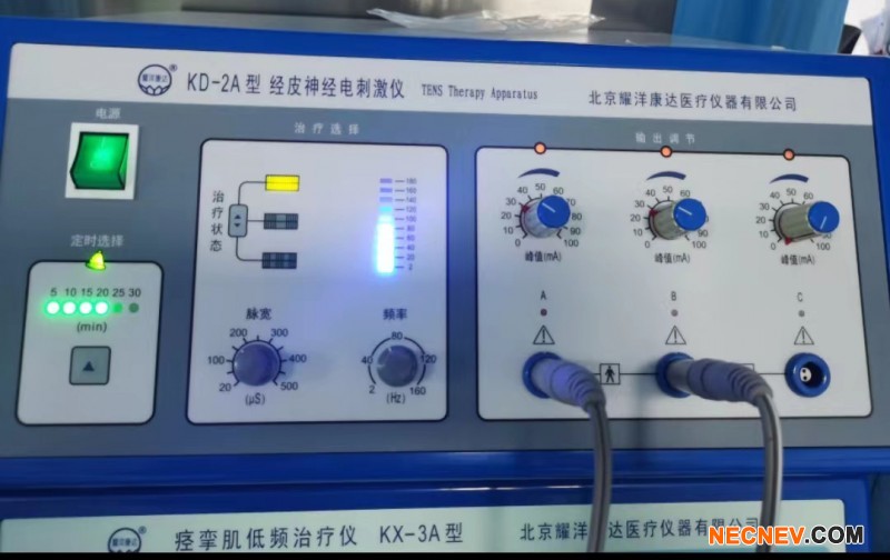 该仪器为I类BF型应用部分,由主机、输出电缆和电极组成。KD-2A型具有3路输出,手动选择参数