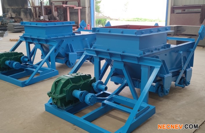 2、原理:电动机通过减速机和曲柄连杆机构,带动底板在托滚上作直线往复运动,从而将物料均匀地卸载到运输机或其它筛选设备上。