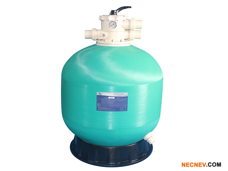 过滤沙缸的工作原理:水泵将泳池的水在沙缸上部放出,通过压力使水快速浸过沙层进行过滤。沙缸底部的带孔收集水管会收集过滤后的水,再经过中央水管上流到沙缸头出口,流向水池。经过一段时间后,杂物会积聚在沙层上面,这时需要进行反冲流清洗。