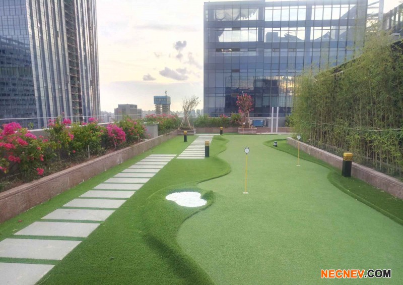 人造高尔夫果领是高尔夫球场的微缩版,精心设计的沙坑、草场完全按照天然草纤维特性设计生产,使之无论是色泽,密度,感官及落球,球的滚动,脚感等皆可与天然草果岭相媲美。无论室内、外,在任何环境下都可利用空间设立。人造果岭起源于美国。由于美国的水利资源匮乏,自然草坪和高尔夫球场果岭日常的管理、维护、保养的成本过高,加之喷洒农药不仅污染环境而且损害人体健康,为了解决这些日益严重的问题,研究出这种低成本、无公害、仿真度高的人造果岭。其中,嵌沙果岭真性最高、专业性最强,适合对高尔夫要求高的客户