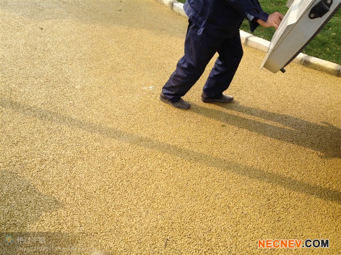 3.辊压:振捣以后,应进一步采用实心钢管或轻型压路机压实压平透水混凝土拌合料,考虑到拌合料的稠度和周围温度等条件,可能需要多次辊压,但应注意,在辊压前必须清理辊子,以防粘结骨料。