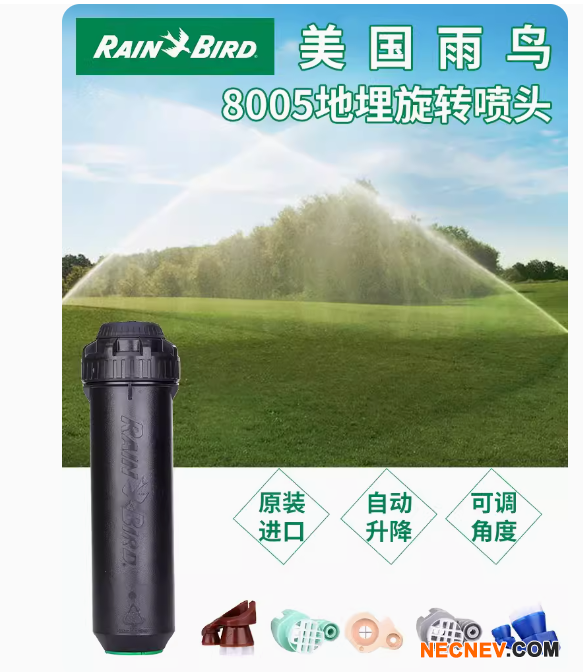 8005喷头射程更大,强度更高,适用于公园、体育场、工矿业等大面积草坪、花卉的灌溉。