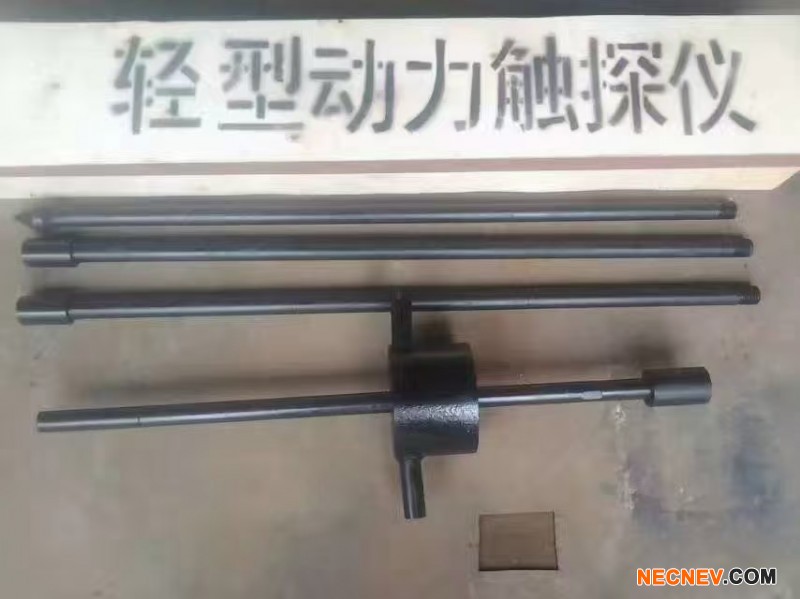 重型触探仪:适用于各类土,是目前承建单位应用广泛的一种地基承载力测 试方法,该法是采用质量为 63.5kg 的穿心锤,以 76cm 的落距,将触探头打入土 中,记录打入 10cm 的锤击数,代用公式为 y=35.96x+23.8(y-地基容许承载力 Kpa , x-重型触探锤击数)。