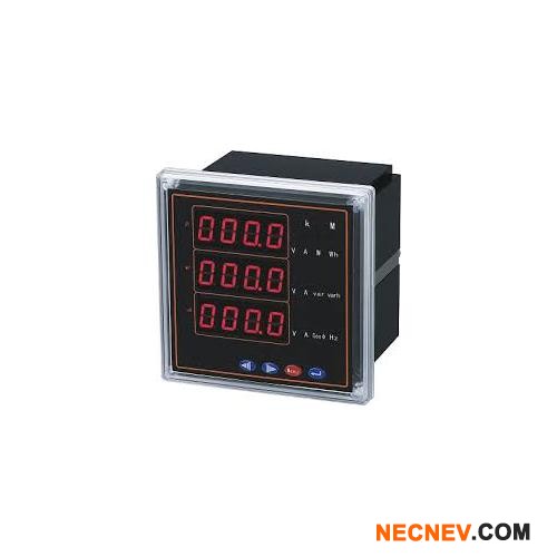 SFERE100多功能电力仪表用于测量显示三相电流,三相电压,有功功率,无功功率,功率因数,有功、无功总电能,带有功、无功总电能脉冲输出,显示方式为48位数码管同时显示,带有功、无功电能脉冲输出;测量精度高、稳定性好、测量范围广、变比可任意设定,具有通讯功能,支持全数字校表,无可调电位器。