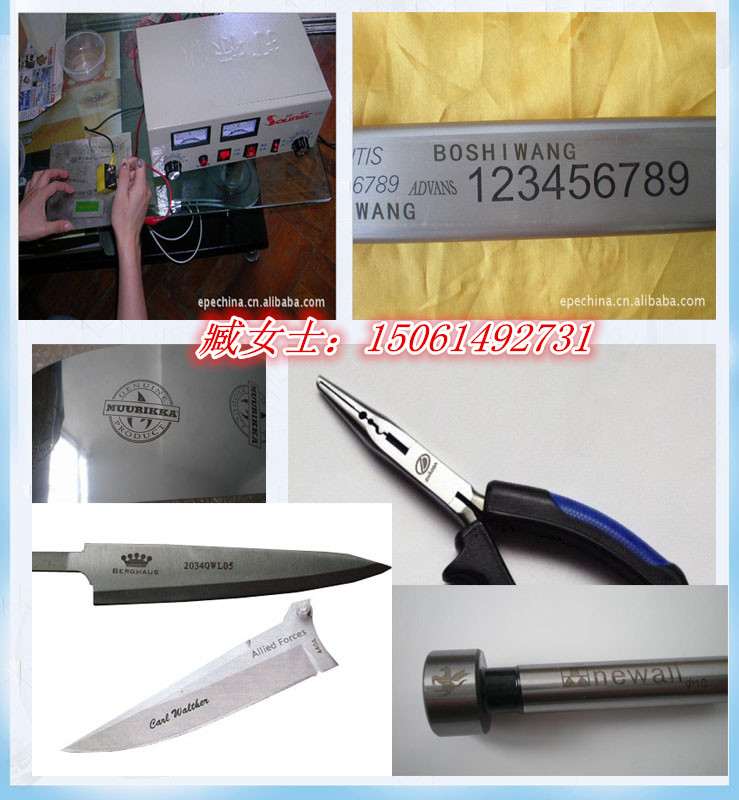 1、适用于多种金属材料(如不锈钢、碳钢、硬质高速合金钢、铝合金、表面镀铬、镀镍、镀锌)制品上直接标注字符,或印制高档不锈钢标牌。用来标注产品名称、型号、技术指标、商标、厂名、技术标准、安全事项等内容/其特点是正规、清晰、耐久、不脱落、不变色、操作灵活方便/标注深度为几微米,对壁薄或精密零件也无热应力、机械变形影响,不论平面、弧面均能标注。