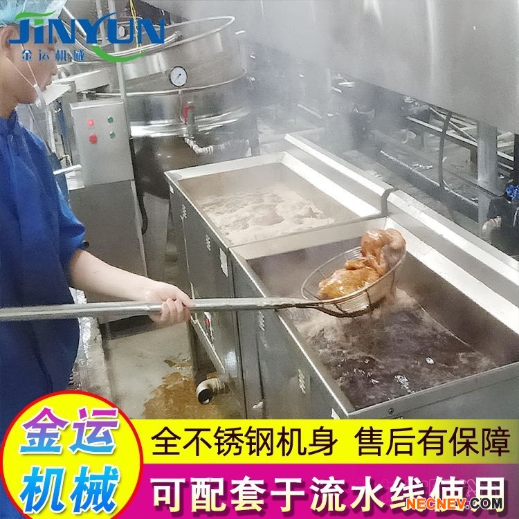 整机采用SUS304不锈钢制作,坚固耐用。底部采用三角形沉渣机构和漏斗式排渣,独立分体式配电控制箱。采用了目前的省油空间技术,使用过程中食用油通过加热管升温,油炸锅内配有测温装置,当温度到达设定温度时,加热管断电,既达到锅内所需温度,又能控制食用油不持续升温,做到省电的同时提高食用油使用寿命,合理的温度控制能保证产品的合格率。自动出料省时省力,降低劳动强度,提高生产效率。所油炸的食物不但色、香、味俱佳,外观干净美观,且提高了产品品质,延长了货架期。广泛用于宾馆、酒店、全鸡店、快餐店、招待所、部队、院校、企业食堂、卤煮食品企业及连锁店等企业使用,适合卤煮猪.牛肉类、各种鱼类、鸡类产品、豆腐制品等。