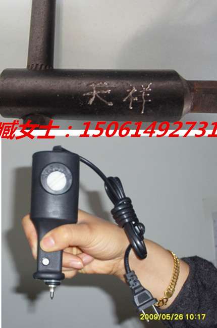 应用范围:适合在各种金属,石材等硬质材料,刻写各种标记,字样、数字等……使用简单方便!电刻笔是一种新型的电子刻写仪器,它具有体积小,重量轻,刻写容易,速度快,便于携带,使用方便,标记永久保存等特点。