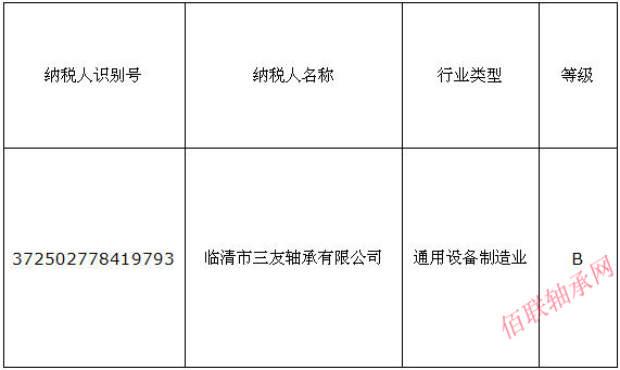 临清市三友轴承有限公司是一家专业生产汽车、电机、摩托车、两轮车、三轮车轴承的厂家,主要产品有6300-6310、6200-6210、6000-6110、16002-16008等系列产品,出口至非洲、东南亚、中东、南美和部分欧洲国家,深受外商青睐。近日,该公司被临清市国家税务局评为“临清市2011-2012年度B级纳税信用等级企业”。