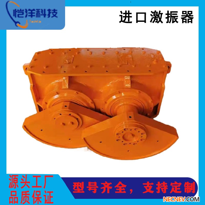 核心工作原理:核心依托偏心质量旋转(主流)或电磁感应、液压驱动,进口产品以偏心式为主 —— 通过电机带动偏心块旋转,产生离心惯性力,经结构传递形成持续激振力,双轴机型通过齿轮 / 自同步实现反向旋转,抵消径向力,输出直线或椭圆定向振动。