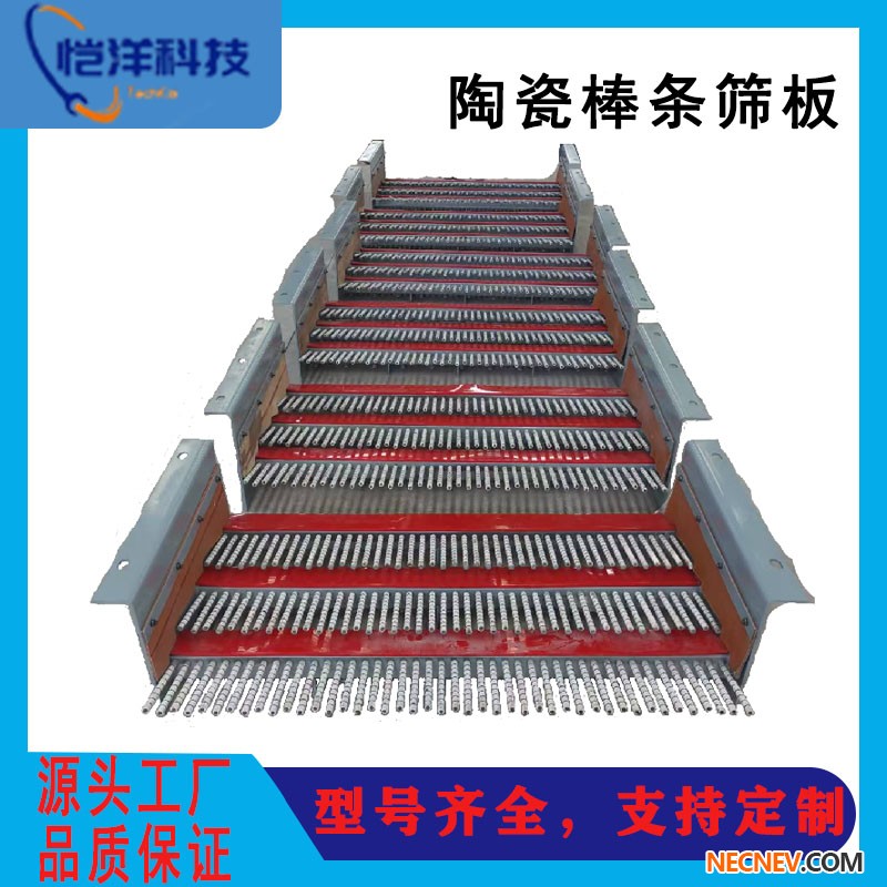 棒条筛板主要包括琴弦棒条、单层双面自清理棒条、聚氨酯棒条、陶瓷棒条四类。悬臂的结构,再加上棒条筛板零件材料的性能,因而这种筛板具有较高的分效率。主要应用于高炉槽下矿石、焦碳等物料的筛分。尤其现在高炉吃精料的要求越来越高,棒条筛板得到了更加广泛的应用,特别是单层双面自清理棒条筛板能够保证入炉烧结矿5mm以下颗粒小于5%,所以更加受到用户的好评;聚氨酯棒条筛板不仅筛分效率高,而且使用寿命长,主要应用于较大颗粒无料的筛分;陶瓷棒条也是基于琴弦棒条的基础上演变而来,主要是提高耐性能。