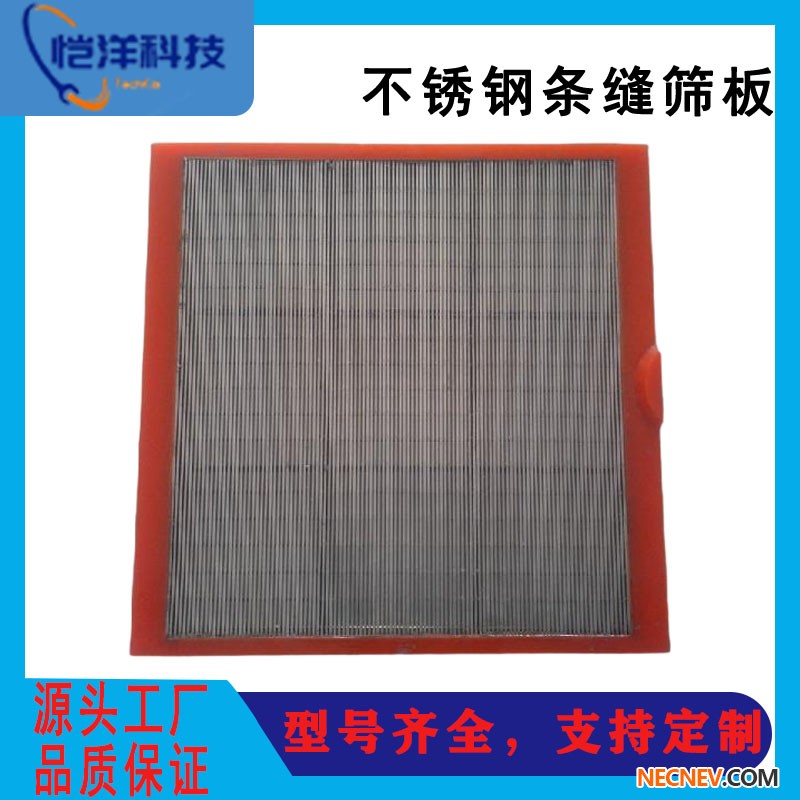 不锈钢条缝筛板是采用先进的熔焊工艺加工而成的一种用于筛分过滤金属网状结构元件。 材料:302、304、304L、316、316L等不锈钢楔形丝。 产品规格:筛面缝隙从0.05-45mm,共60多种规格,可根据用于要求生产。 产品用途:条缝筛板产品广泛应用于多行业中的筛分、过滤、脱水、脱泥等作业。