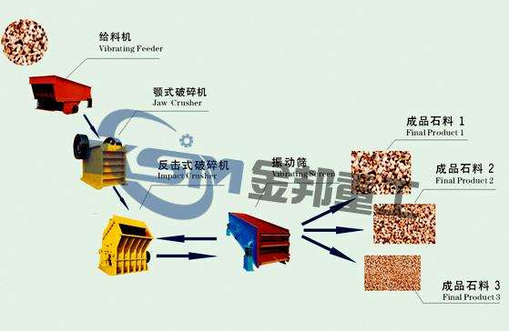 河南金邦的石头破碎机,机制砂加工设备,石子粉碎机,破碎生产线,烘干机,制砂机设计先进,制作精细,性能可靠,具有国际先进水平,畅销全国,在同行业中享有较高声誉,并深受广大用户的信赖.咨询电话:0371-86078833石料生产线主要由振动给料机、颚式破碎机、反击式破碎机、圆锥破,振动筛、集中电控等组成,配以除尘器等设备。碎石生产线设计产量一般为50-500吨/小时。并可根据客户的不同工艺要求,配置各种型号的设备。特别适合于石灰石、灰岩、页岩、花岗岩等中等硬度以下岩石的破碎生产,适用于水电、建材、高速公路、城市建设等行业。石料生产线的设备配置主要依据客户对石料规格以及产量和石料的用途来确定,我们提供售前、售中、售后的全面服务,依据客户生产现场来配置流程,力求为客户做到最合理、最经济的碎石生产线。