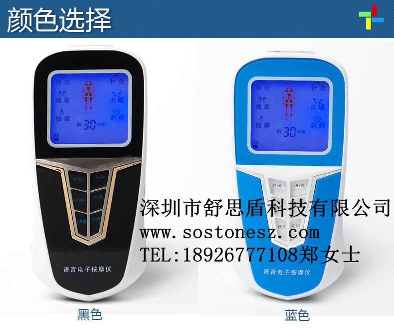 舒思盾语音电子按摩仪 多功能蓝屏数码经络按摩器 深圳舒思盾总部