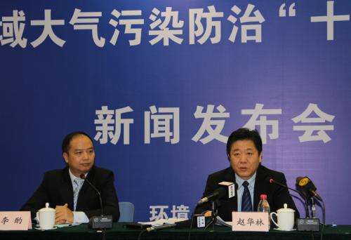 2012年12月5日,环保部举行《重点区域大气污染防治“十二五”规划》新闻发布会,环境保护部污染防治司司长赵华林介绍了《规划》的相关情况。图为发布会现场。新华网 冯文雅 摄