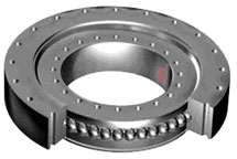 单排四点接触球式回转支承由两个座圈组成、结构紧凑、重量轻、钢球一圆弧滚道四点接触,能同时承受轴向力、径向力和倾翻力矩。回转式输送机、焊接操作机、中小型起重机和挖掘机等工程机械均可选用。