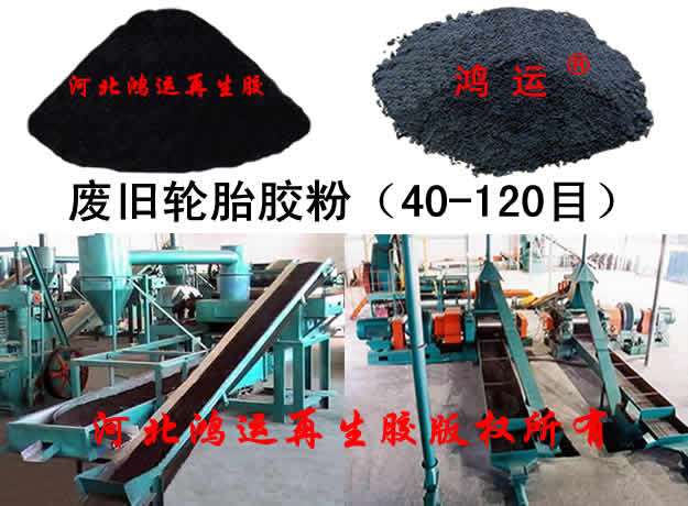 生产过程:采用空气涡轮制冷低温粉碎法生产40目(0.425mm)到200目(0.0750mm)轮胎胶粉