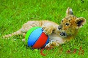 给虎宝宝配玩具。