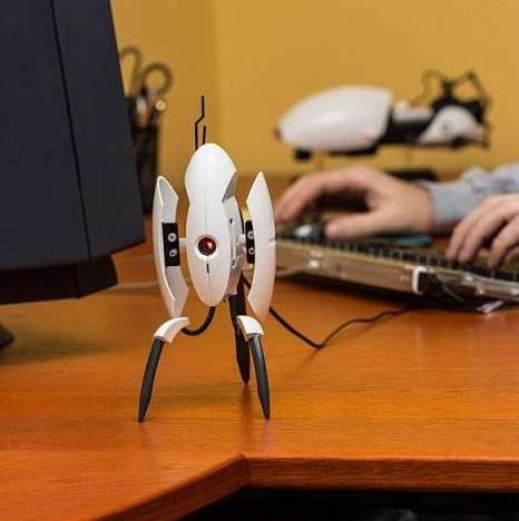 它采用USB接口进行充电,它可以在有限的空间内进行走动,而当有人接近你的办公桌时,它会自动打开两侧舱门并播放出独特的声音效果来提醒你,而当受到外力作用时,它会发出震动,就像是受到真实的重创,是不是很逼真?