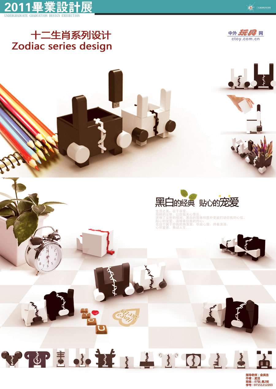 继2010年推出的“广东轻工学院08届玩具设计专业学生作品展”获得热烈反响后,中外玩具网与《中外玩具制造》杂志两大玩具业主流媒体独家策划、玩具设计论坛合作支持的“2011全国玩具专业学生毕业设计作品联展”专题即将强档推出!此前本网已推出“广东轻工学院08届玩具设计专业学生作品展”、“2011天津科技大学玩具设计专业作品展”,今天将继续带来2011广东商学院玩具与游戏设计专业毕业设计展览。随后我们还将陆续推出相关作品的专家点评,敬请持续关注。