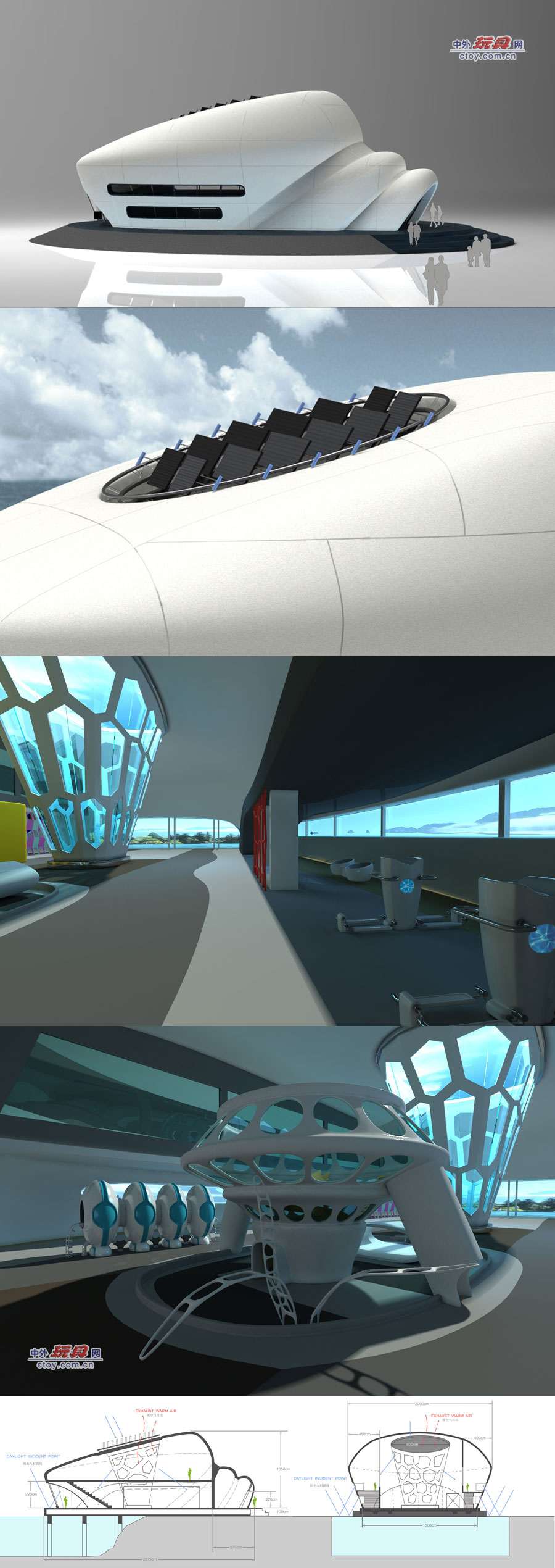 设计说明:近年来由于全球经济发展所带来的温室气体排放导致的全球极端天气事件频发,对人类的生存环境产生着巨大的威胁。我们以既能符合环保要求,减少原料消耗,又能更高效达到全民健身效果的“低碳”健身路径(娱乐器械)为设计目标。本设计围绕“低碳”“环保”设计理念,以在建“海珠湖”为设计蓝本,设计出一个“低碳健身”为主题的“净化水处理系统”健身娱乐场馆。场馆设计为两层,首层健身娱乐,二层为游览观光作用。在首层的器械摆放,中心为净水器,两边分别为成人健身娱乐器械和儿童健身娱乐器械。场馆顶部能接收太阳能,以净水器为中心,各个器械连接动能转换器。人们在使用器械过程中产生的动能来带动净水器的运转,从而达到净化湖水的功能。