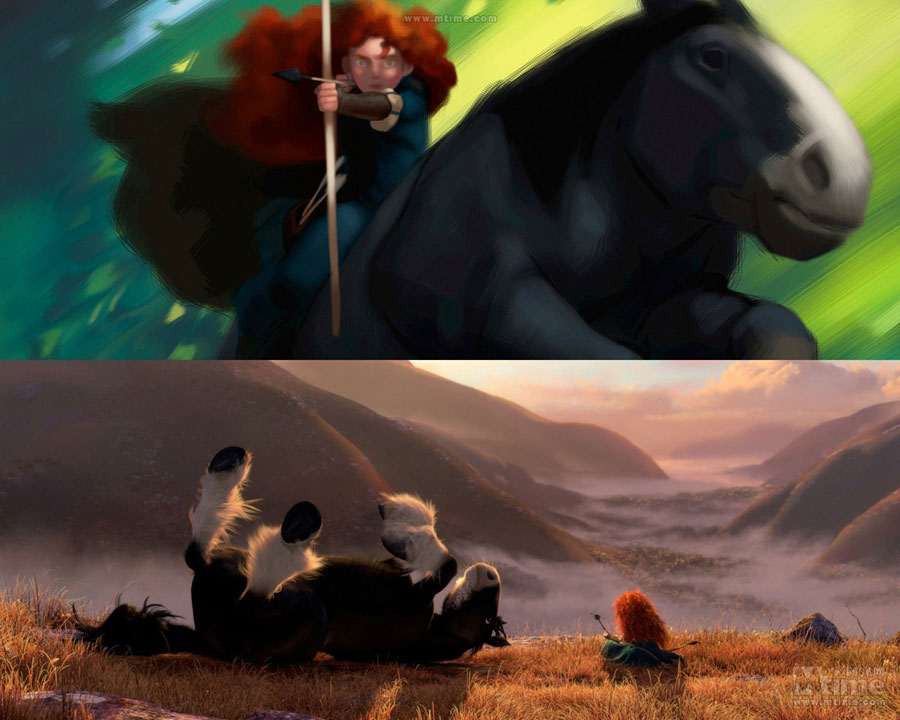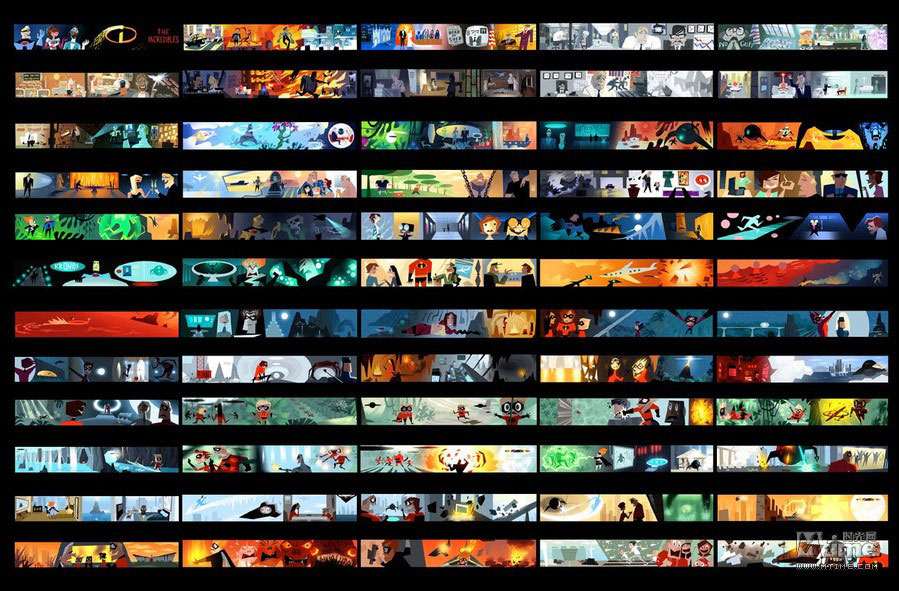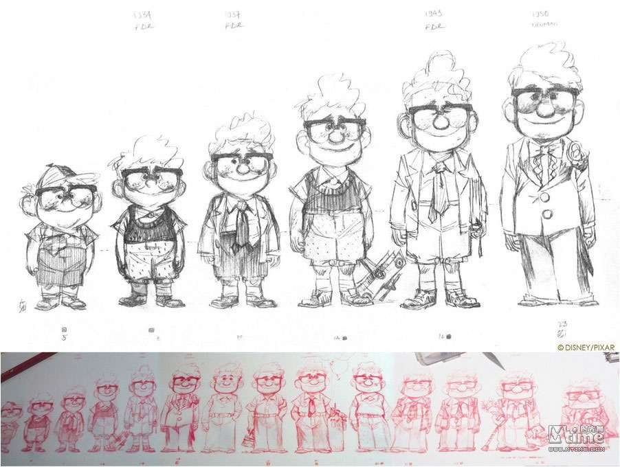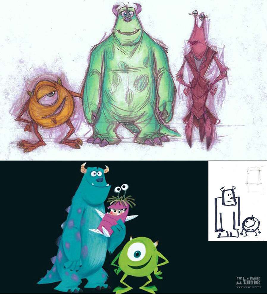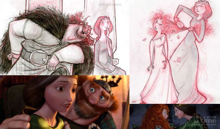 本文将以倒叙的方式,回顾皮克斯留下的一部部经典作品:勇敢传说、玩具总动员3、飞屋环游记、海底总动员、机器人总动员、超人总动员……通过一张张精美的概念图,走进皮克斯的动画世界,领略从草稿设计到绚丽成品的神奇转变。 时光网特稿 由迪士尼出品、皮克斯精心打造的年度动画力作《勇敢传说》即将于6月19日抢先全球登陆中国内地3D银幕。作为皮克斯第13部、也是三年来的首部原创作品,《勇敢传说》还是第一部源自童话故事、并且由女性担当主角同时由女性导演参与执导的皮克斯动画,诸多“第一”令影片意义非凡;而陆续曝光的几批精美概念设计图更是饱含了浓郁苏格兰气息,全新的人设与画风同样令人眼前一亮,也不禁让我们将视线转移到了一部动画的诞生之初:概念艺术(Concept Art)。本专题将带领大家,通过一张张精美的概念图,走进皮克斯的动画世界,领略从草稿设计到绚丽成品的神奇转变。(编者注:由于年代久远、画质欠佳等原因,我们没有收录后来有推出新续集的《玩具总动员1&2》及《赛车总动员1》的概念图,敬请谅解) 一切从“画”开始:概念艺术ABC 正如画一张精细的画作之前需要打草图和小稿一样,概念设计就是在现代视觉娱乐项目(戏剧、游戏和电影)工作流程中,在视觉上的第一步。简单说,概念艺术就是为一个项目的定下最初视觉印象。最初的概念设计已经不可考,它是随着设计行业的发展逐渐形成的概念。但是一般来说,Concept Art这个词汇被行业熟悉,是在二十世纪的30年代的汽车工业中和迪士尼动画产业中。在很长的一段时间中,概念艺术家的工作被定义为“某一个项目的视觉设计工作中创造之前不存在的角色、场景以及其他物品”,所以“概念艺术”这个词汇往往和奇幻科幻相关的作品联系在一起。 随着CG特效和3D动画技术的发展,概念设计对于动画产业的重要性显得尤其明显。无论对于现代全数字的3D动画还是传统的2D动画,第一步都离不开“画”,概念设计师首先要画出主要角色、关键场景、关键帧的粗略画面――虽然只是粗略画面,可以不用画出细节,但是需要定下的是整体印象。拿角色举例,在这一步需要定下角色的性别、年龄、气质、基本体型、服装造型方向和基础配色。之后,有一个叫做“视觉拓展”部门就会基于概念设计的方向,保持原有的艺术造型风格,朝向最终的效果(3D模型或者在最终画面中出现的量化2D的造型),制作出一个标准造型,之后再交给动画师(2D动画)或者建模师(3D动画)往下进行。 艺术气质的奠定者:皮克斯著名画师 虽然现在现代工业流程中的概念设计和传统的画家有了明显的职业分歧,但是要成为概念艺术家,首先要成为画家。在一些影视项目中,制作人和导演会大胆启用一些没有从事过这一行,但是在绘画上有成就的画家来做设计,往往可以收到意想不到的效果,因为一个好的概念设计师,对整部动画的气质走向有很重要的影响。《海底总动员》的概念设计师George Hull后来成为了《黑客帝国》的主力设计;《怪兽电力公司》的原画家Nicolas Marlet更是在刚刚崭露头角之后,便迅速被梦工厂挖走成为概念部门的头牌画家;而为了实现《机器人总动员》中满是垃圾的地球,皮克斯更是不惜重金请出著名的画家陈志勇(绘本大师,短片《失物招领》的作者,奥斯卡最佳短片奖和澳洲文学奖的获得者)来绘制概念图。 不过,光有好的概念设计,也仅仅是有了一个好的开始而已,不足以成就伟大的作品。想要将优秀的概念艺术的整体美感传达到最终的效果上,整个动画团队需要有整体上都极高的美术水准:视觉拓展部门要基于概念图的制作出符合美术标准的定稿、故事板部门要设计出富有美感的分镜头、图形设计部门制作出符合整体效果的细节图案设计……任何一个部门的走偏,都可能让最初精美的设计在最终效果上无法实现。这也是为何有些团队同样拥有厉害的核心人物,却制作不出高水准作品的原因。 从2D到3D:皮克斯的概念艺术 到了如今的3D动画时代,从概念到实现的过程中,责任最重大的是模型部门。因为这个部门需要理解画在纸上的2D设计图,理解一个造型的风格和整体动态效果,再制作出无论从哪个角度看都符合2D设计风格的3D模型。这就意味着3D艺术家同样需要丰富的纸上绘画经验。而因为3D技术的发展,概念设计的手法也渐渐走向多元,除了常用的CG绘画和照片拼贴,实体雕塑和简易模型制作也渐渐成为概念艺术创作的一部分。 保持从写实到卡通风格的艺术概括能力,并且从2D概念画一直坚持到3D的成品,这一点看似容易,其实非常困难,需要整个动画团队的长时间积累。纵观皮克斯多年的作品,艺术上承袭了经典迪士尼风格的夸张生动造型,对画面中所有的物体有着精彩的概括和表现,而3D的画面还表现出了不输2D画面的华丽色彩和丰富细节,这就是皮克斯从概念设计到最终动画过程中始终保持着高水准的最佳证明。而除了有经验丰富的3D模型师,皮克斯的研发部门还有3D模型渲染软件Renderman(版权为皮克斯独有)这张王牌,足以多年来让皮克斯的作品在3D画面的精度和色彩表现上保持领先地位,笑傲江湖。 最后,附上一支《勇敢传说》幕后特辑,从中可以看到概念画师的工作情景: 《勇敢传说》(2012) 早在2008年4月《勇敢传说》便已立项,不过当时的片名还是《熊与弓》(The Bear and the Bow)。作为皮克斯