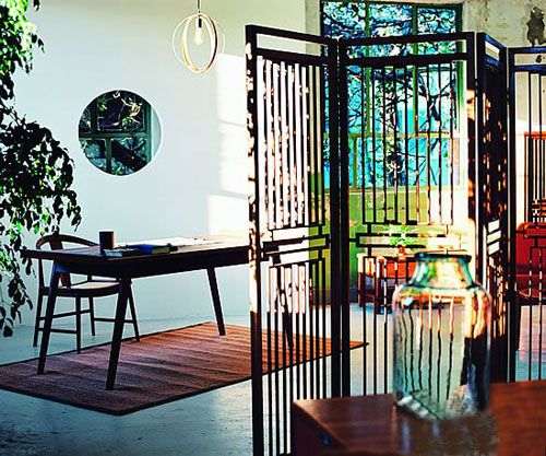 如今屏风的材质有很多种,如木雕、石材、玻璃、金属、云母等,样式也是多种多样。石大宇最新的屏风作品“屏七贤”极富特色,在材质上以富有中国文化情感的竹子为材,有别于使用珍稀贵重木材、石材的传统;在颜色方面保留了竹材的本色;造型上以不规则造型立面,非垂直站立却能稳重平衡。这些改变体现了与传统屏风的差异,做到了古“屏”新“风”,是中式家具的现代化演绎。