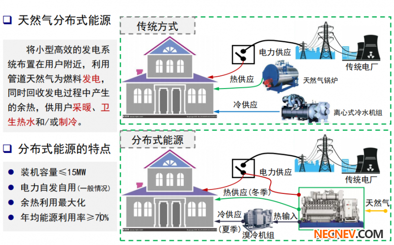 分布式能源是指分布在用户端的能源综合利用系统。它以天然气等清洁能源为主要一次能源,通过冷热电三联供等方式实现能源的梯级利用,综合能源利用效率可达70%以上。与传统的集中式能源供应相比,分布式能源具有更高的能源利用效率、更低的能源输送损耗和更强的能源供应灵活性。