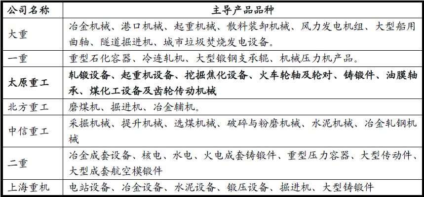 目前,七大重工的主导产品各有侧重,在各自细分市场具备绝对优势,形成差异化竞争的格局,市场竞争态势相对较为平缓。