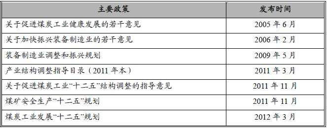 《关于加快振兴装备制造业的若干意见》指出,要发展大型煤炭井下综合采掘、提升和洗选设备,实现大型综合采掘、提升和洗选设备国产化。