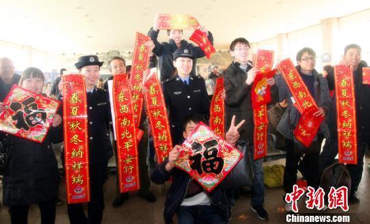 “东西南北平安行、春夏秋冬纳祥瑞”,当一幅幅印刷精美的春联以及贺年卡发放到回家过年旅客的手中时,他们都按捺不住喜悦的心情,正如四川籍旅客张某所说,“这是太原铁路民警送给我们的平安祝福,谢谢你们!”