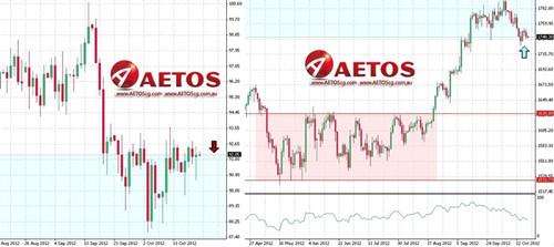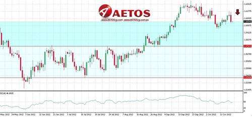 昨日是欧盟峰会的第一天,对于本次欧盟峰会,市场预期可能并不强烈,从目前的消息来看,本次欧盟峰会可能在银行联盟方面取得突破,而成立银行联盟的第一步是银行业的监管问题。对于这个议题,今日奥朗德表示本次峰会的目的是银行监管;默克尔也表示领导人应该尽快推行银行监管,但预计峰会上不会有重大决议。至于市场所期盼的欧洲共同预算方案,本次欧盟峰会可能并不会做出讨论。总体来看,昨日欧洲方面较为平静,市场波澜主要源于美国方面。盘前美国公布了本周失业人数,出乎市场预料的是,本周初领救济金的失业人数大幅反弹至38.8万,尽管差于市场预期,造成早盘时股市与风险货币普遍回落,随后谷歌第三季度财报本应在昨日盘后公布,但盘中却被意外公布,据谷歌消息,意外公布的原因是印刷公司未经许可私自提交。由于财报差于预期,盘中谷歌一度大跌11%,随后停盘之收盘之前。谷歌的大跌带动美股回落,虽然谷歌的财报似乎与汇市无甚大关系,但近几日持续上涨的风险货币却借机调整,截至收盘,风险货币均呈现不同幅度的回落,其中英镑跌幅尤为严重。