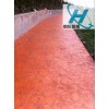 ①该材料为彩色颗粒粉状,里面含有特种水泥成分,与砼同步施工。在砼未凝固前便撒在砼的表面,因此能与基础砼完全粘结在一起,形成