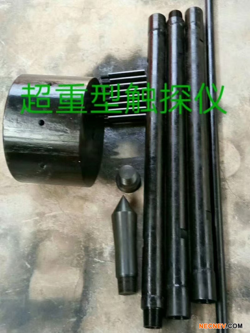 重型触探仪:适用于各类土,是目前承建单位应用广泛的一种地基承载力测 试方法,该法是采用质量为 63.5kg 的穿心锤,以 76cm 的落距,将触探头打入土 中,记录打入 10cm 的锤击数,代用公式为 y=35.96x+23.8(y-地基容许承载力 Kpa , x-重型触探锤击数)。