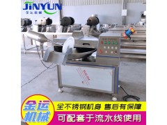 斩拌机利用站到高速旋转的斩切作用,将肉块,碎肉,脂肪等主要原料精细的斩切成肉馅或肉泥,同时将其他原料如水,冰片,辅料一起搅拌均匀。斩拌机的刀速、锅速、斩刀与斩锅的间隙达到合理的组合,从而减少物料发热量,细度好,大大的提高了肉制品的乳化效果。